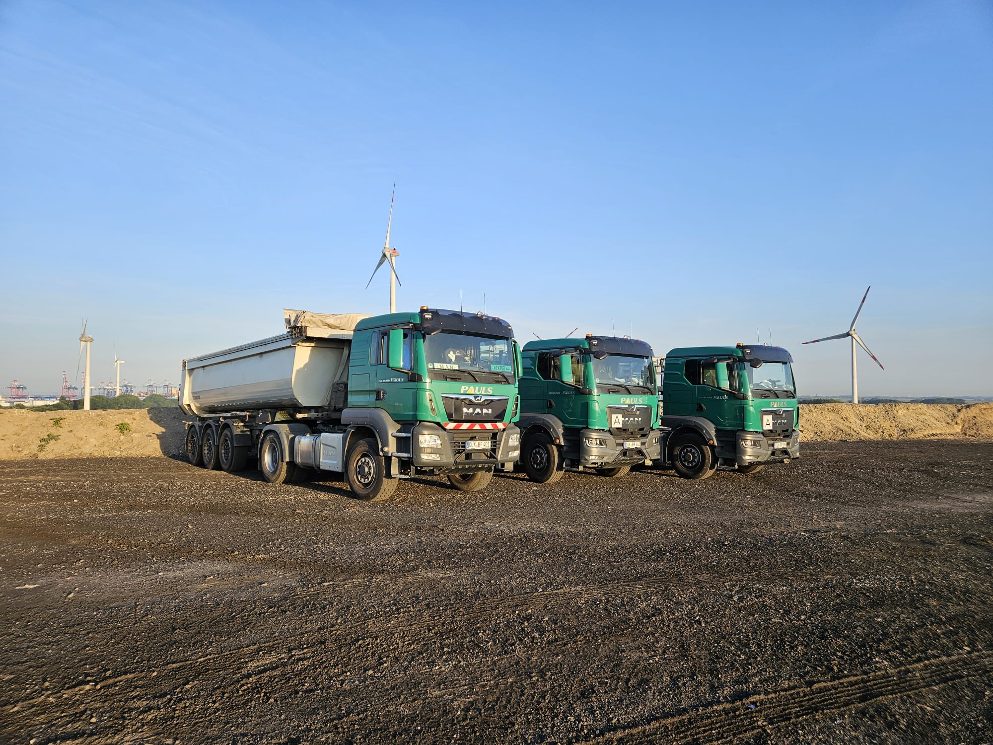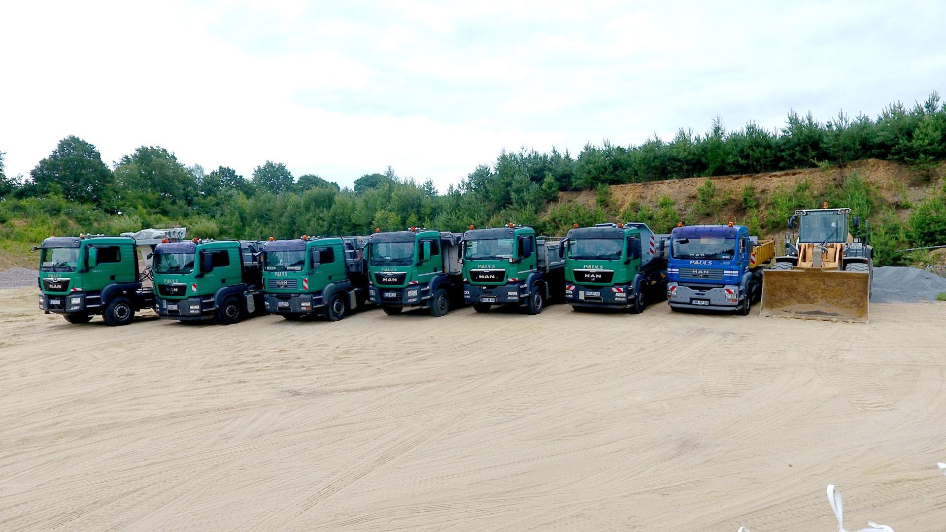 Unser Fuhrpark umfasst rund 15 Maschinen und ermöglicht es uns zeitgleich mehrere Projekte zuverlässig zu versorgen. Für jede Baustelle haben wir das passende Gerät. Der Fuhrpark entspricht dem heutigem Stand der Technik und garantiert genaues und umweltfreundliches Arbeiten. Unsere Fahrzeuge mit Fahrer werden auch auf Stundenbasis für Ihr Projekt tätig.