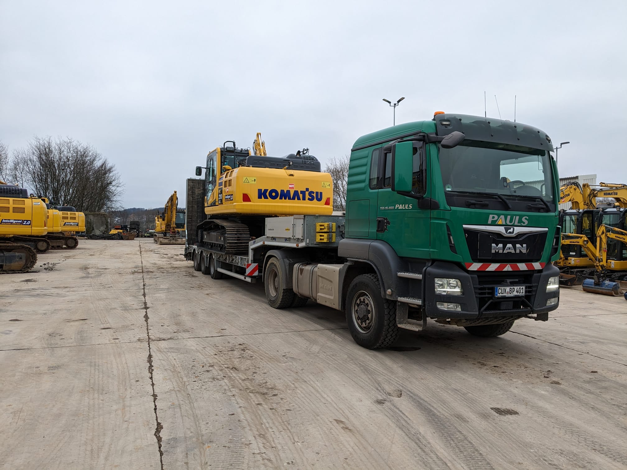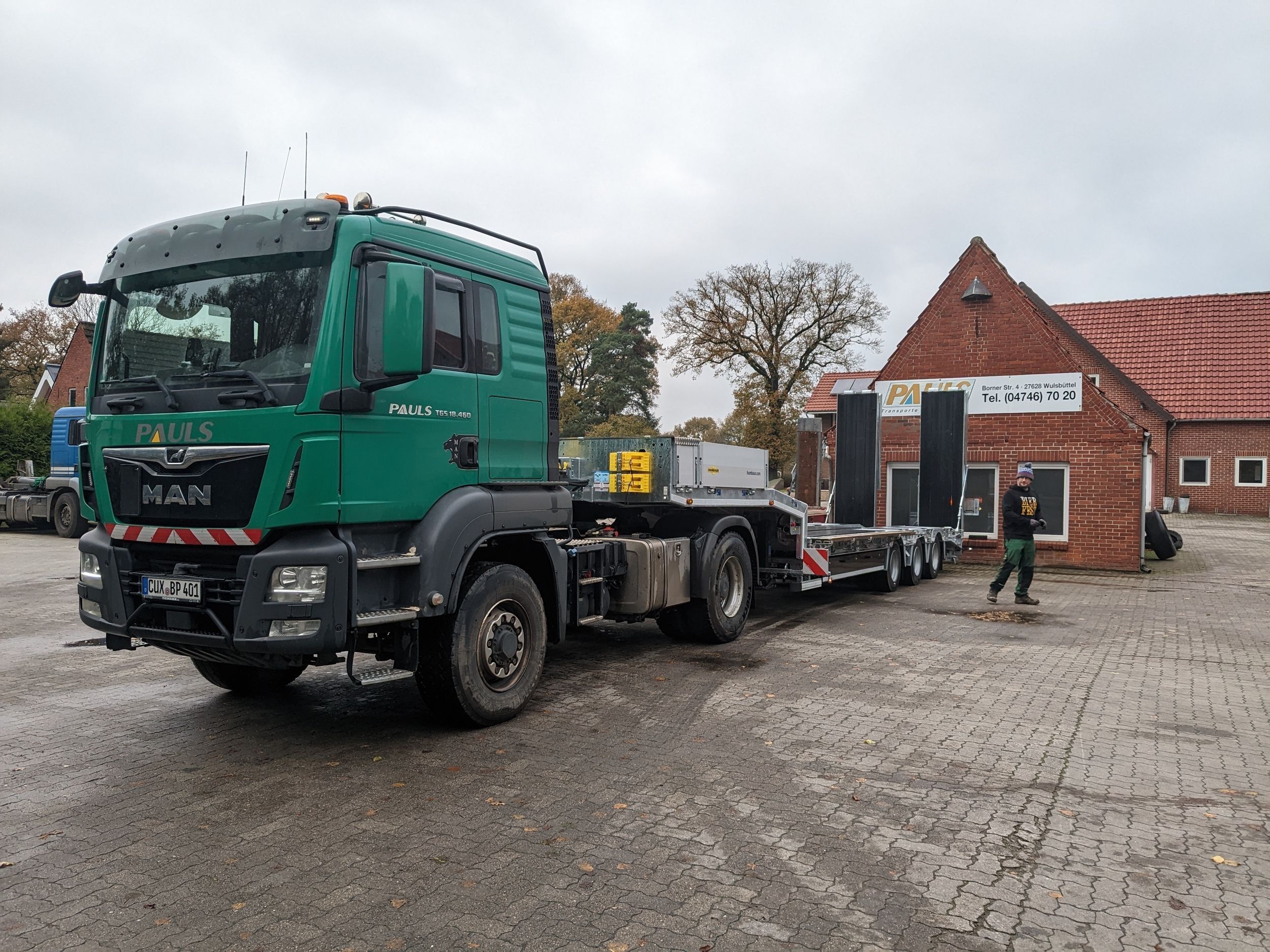 Ganz Ihren Anforderungen entsprechend können wir Maschinen bis zu 3 Metern Breite und und deinem Gewicht von 26 Tonnen transportieren.
